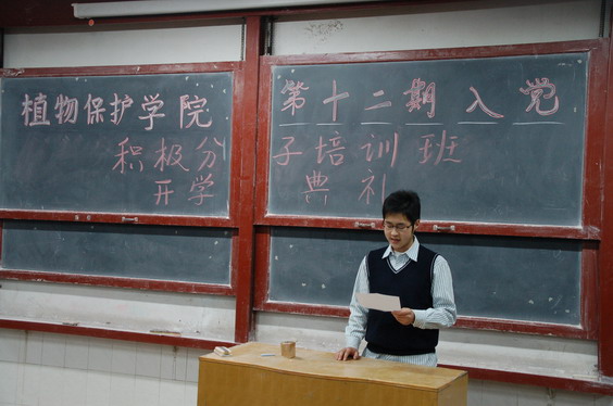 培训班学员代表秦德彬同学作了发言,表示要珍惜学习机会,以饱满的政治热情,严肃认真的学习态度,刻苦钻研的学习精神,上好每一节培训课。认真遵守各项纪律,在学习和生活中,以共产党员的标准要求自己,全面提升理论素质,净化思想境界,努力做一名优秀的入党积极分子,积极加强党性锻炼,自觉接受党组织的培养、教育和考察,努力在大学生群体中发挥表率作用,为早日加入党组织、实现自己的理想不断努力奋斗。