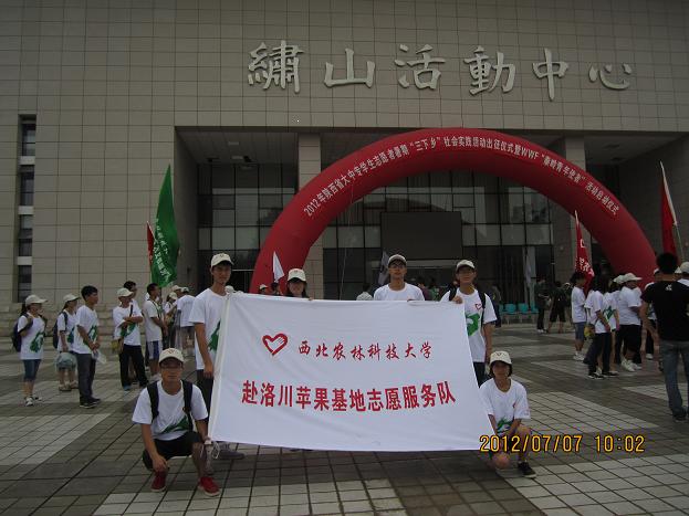 7月7日上午自拍视频 “三下乡”之“洛川苹果志愿服务队”参加了“2012年陕西省大中专学生志愿者暑期‘三下乡’社会实践活动出征仪式暨WWF‘秦岭青年使者’活动启动仪式”,与会领导的发言使队员们信心满满,下乡的热情更加高涨了。