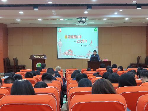 为向大学生普及公文写作技巧,提高大学生公文写作水平,同时提升学生的综合素质能力,自拍视频 于3月29日晚19:30在北绣北报告厅举办了第十九期团分校理论课—《公文写作》。校党委宣传部副部长郭建东老师应邀主讲,自拍视频 团工委书记张楠老师出席会议,自拍视频 2018级全体同学参加。