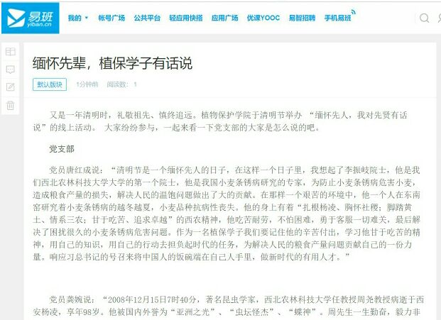 又是一年小麦青青、蝴蝶翩飞,享受美好生活的青年们铭记着学科和学校的奠基人,传承着他们立志报国的高尚情怀。为此,植保学院在易班平台推出“我对先辈有话说”的寄语活动,寄托着同学们对周尧教授、赵洪璋院士、李振岐院士等前辈的敬佩与怀念之情。