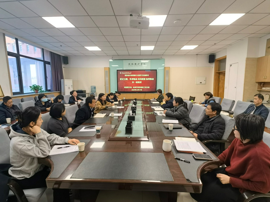 为深入学习贯彻党的二十大精神,切实将学习成效转化为推动事业发展的实践动力,近日,植保学院行政管理教工党支部与博览园支部在学院第二会议室,联合开展2025年下半年党员基本培训第二次集中大课交流研讨活动。博览园副主任祁选轩、郝利、植保学院行政副院长闫建兴、党委副书记高媛及双方党员代表参加会议。学院行政管理教工党支部书记、办公室主任王宏主持会议。